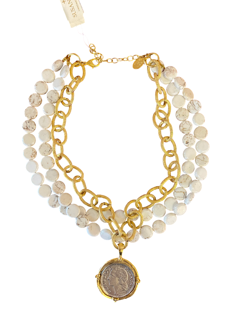 Gold and White Silver Coin Necklace