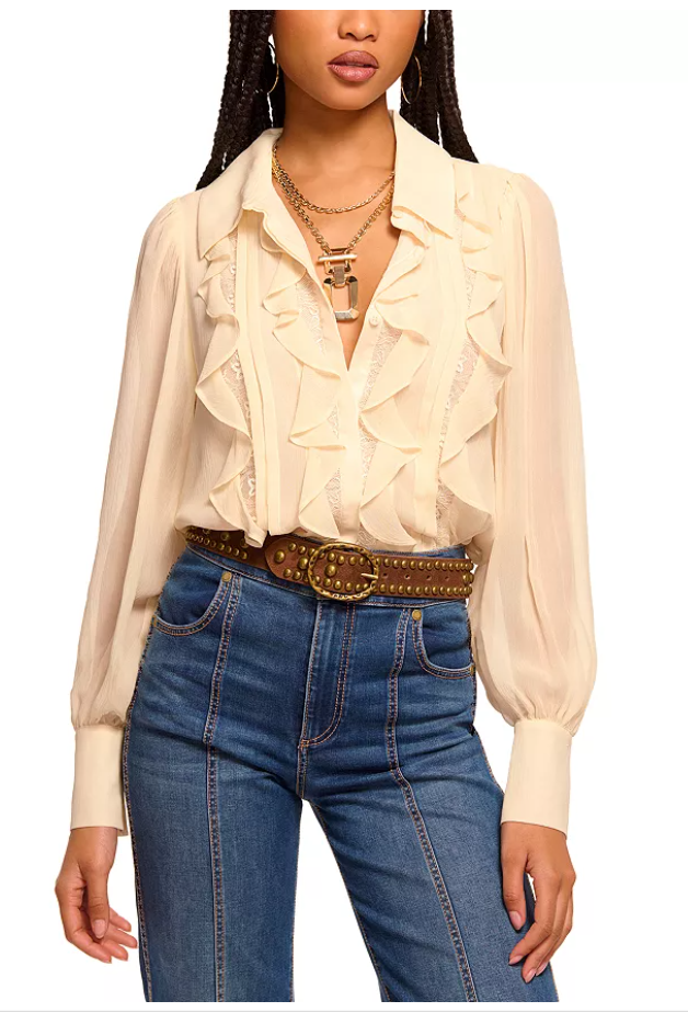 Ruffle trim, lace stripes and pintuck stripes at front
