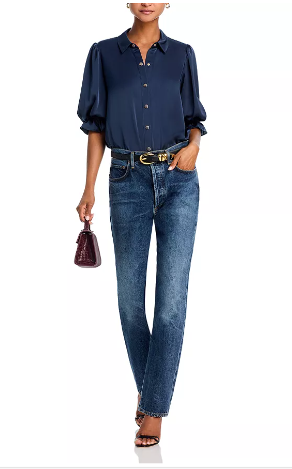 Model measurements: 5'10" height, 33.5" bust, 23.5" waist, 34.5" hips, wearing a size small
