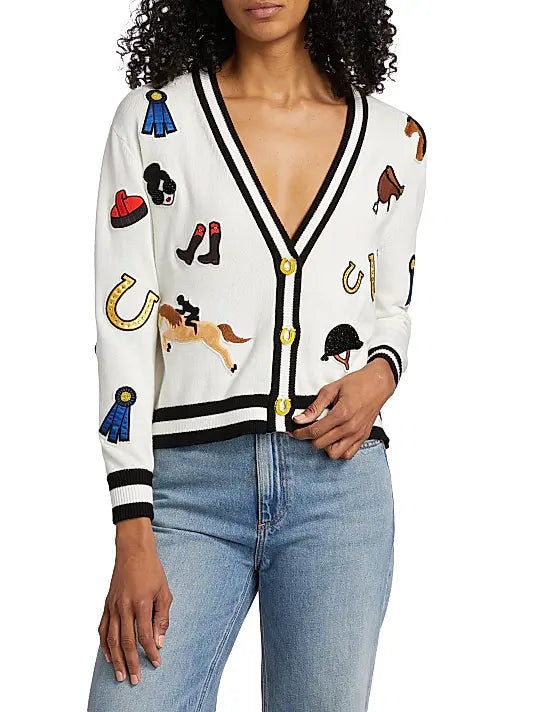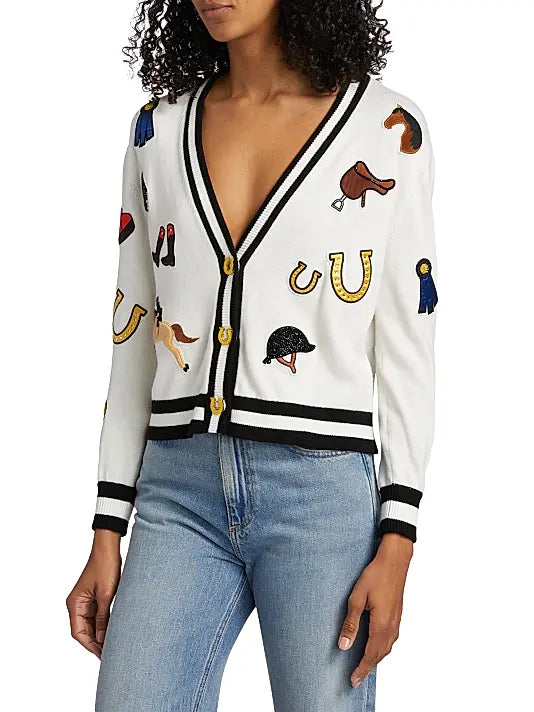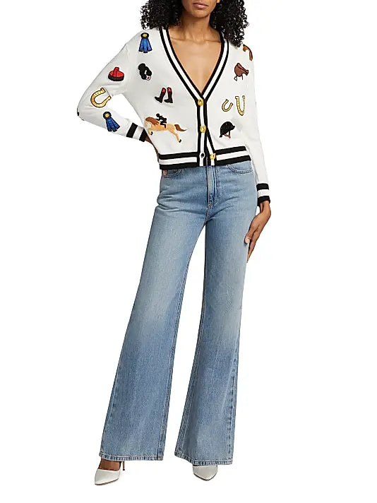 This Bradley cardigan from Alice + Olivia is crafted of stretch cotton and is elevated with equestrian-inspired patches.